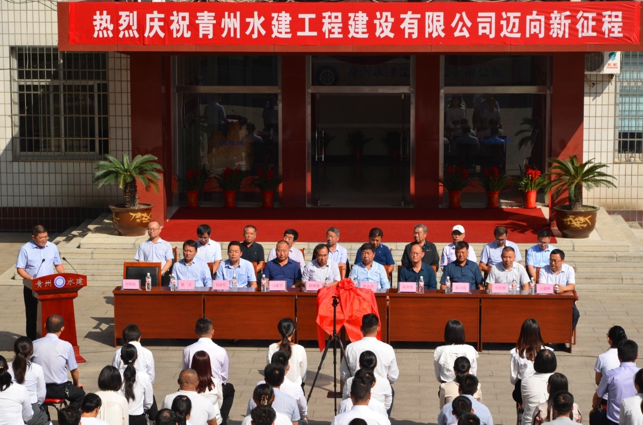 2021年9月30日上午,青州市水利建筑总公司在办公楼前举行更名揭牌仪式,正式更名为“乐鱼(中国)”。潍坊市、青州市有关部门领导、在公司发展中作出过突出贡献的老领导以及公司全体干部职工参加了揭牌仪式。