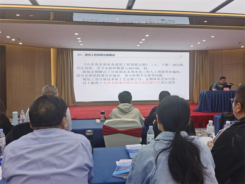 为贯彻落实山东省水利厅《关于发布山东省水利水电工程预算定额及设计概(估)算编制办法的通知》(鲁水建字【2022】69号)文件,2023年4月21日投标部组织业务骨干参加由山东省水利水电勘测设计协会主办、山东省水利水电勘测设计协会施工造价专业委员会、广联达科技股份有限公司山东分公司协办的《山东省水利水电工程设计概(估)算编制办法及预算定额》宣贯培训班。
